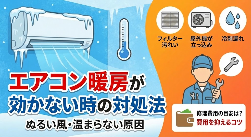 エアコン暖房が効かない時の対処法|ぬるい風・温まらない原因と修理費用の目安