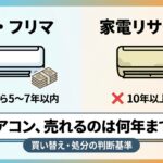 エアコン以外の家電もまとめて整理したい方は、引っ越し前の家電判断フローチャートもあわせて確認しておくと、処分・修理・売却の全体像が見えやすくなります。