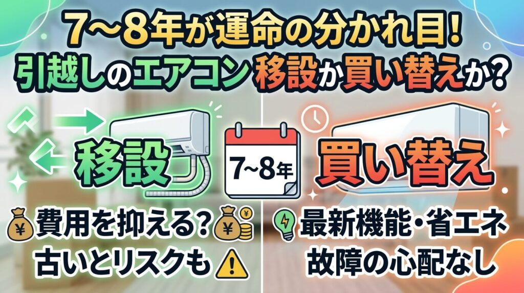 引っ越し時のエアコンは移設か買い替えか|7〜8年・費用・故障リスクで判断