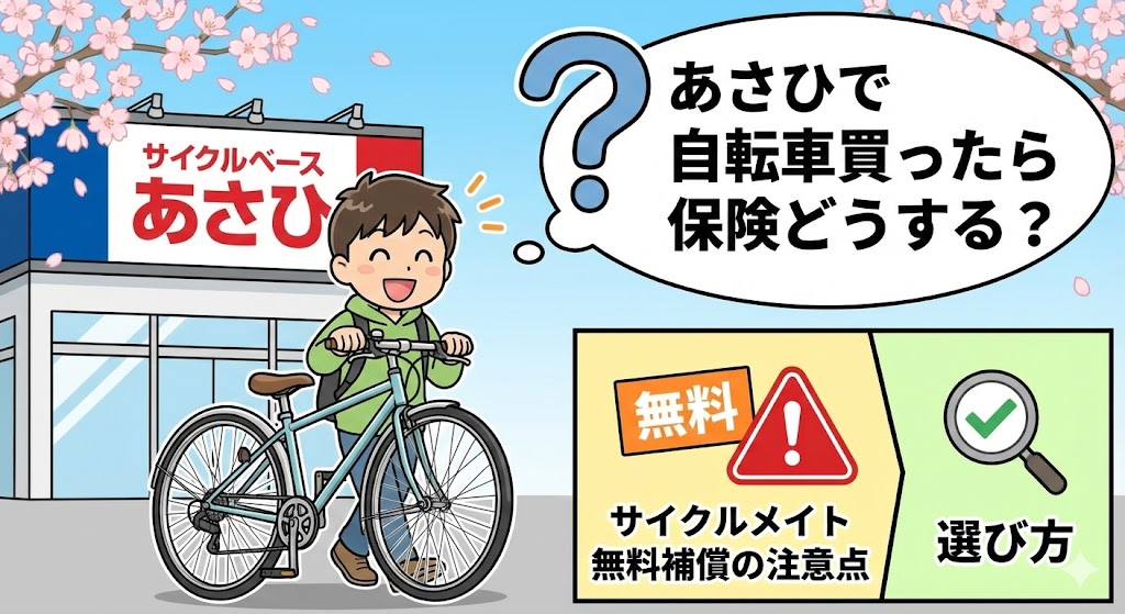 あさひで自転車買ったら保険どうする?サイクルメイト無料補償の注意点と選び方