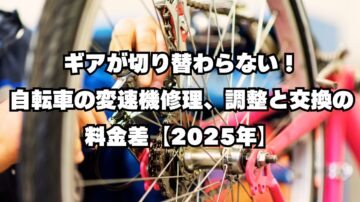 「自転車のギアがうまく切り替わらない」「チェーンが滑る感じがする」といったトラブルは、サイクリングの快適さを大きく損ねます。 自転車のギア修理(変速機修理)の費用は、その原因によって大きく変動します。ワイヤーの張りを微調整するだけの軽度な「調整」であれば¥500〜¥1,760程度で済みますが、ワイヤーの劣化や変速機本体(ディレイラー)の故障が原因の場合、「ワイヤー交換(¥2,000〜¥5,000)…