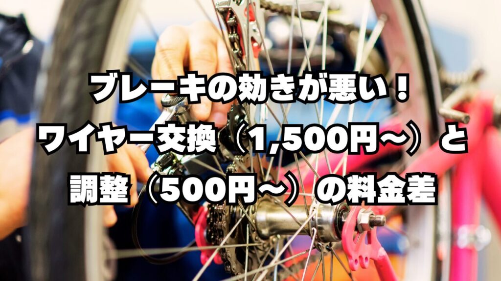 - 調整か交換か:ブレーキの不調は、安価な「調整」(¥400〜¥1,000)で済む場合と、高価な「交換」(¥1,500〜¥5,000)が必要な場合があります。