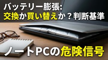 ノートPCの底面が浮く、キーボードが盛り上がる、トラックパッドが押しにくい。そんな変化が出ているのに、まだ起動するからと使い続けていないでしょうか。バッテリー膨張は、通常の「電池持ちが悪くなった」という劣化とは別で、安全面を優先して判断したい症状です。 バッテリー膨張に気づいた直後に、まず止めるべきこと バッテリー交換で延命できるケースと、買い替えが合理的なケース 修理費用の目安、自分で外してよい…