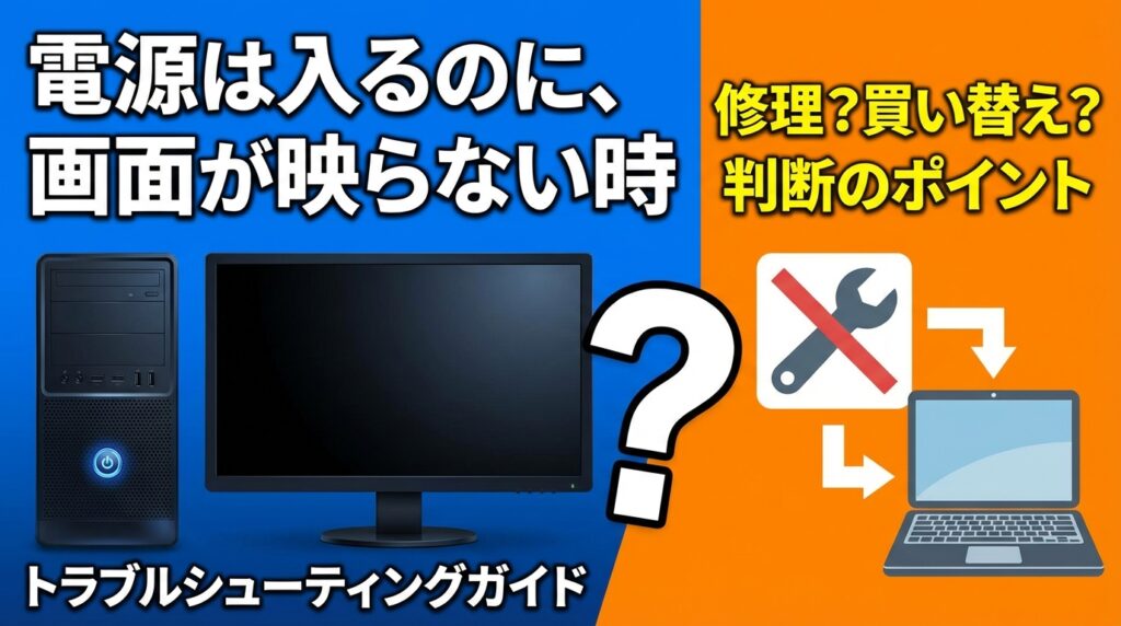 この記事では、電源は入るのに画面が映らない症状について、切り分け方と修理か買い替えかの考え方を整理しました。