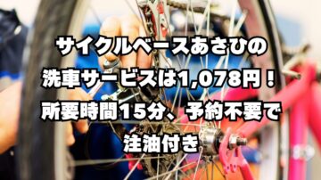 「自転車が泥だらけだけど、自分で洗うのは面倒」「集合住宅で洗車スペースがない」とお悩みではありませんか? サイクルベースあさひが提供する「ボディ洗車サービス」は、「面倒なお掃除はプロにおまかせください」というキャッチコピーの通り、日常の汚れを短時間かつ低価格(¥1,078 税込)で手軽にリセットしたいサイクリスト向けの簡易洗車サービスです。 この記事では、あさひの洗車サービスの具体的な内容、料金、…