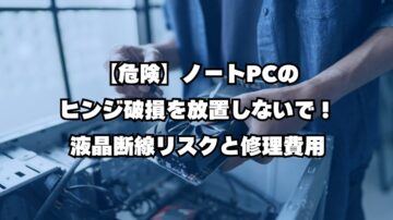 ノートパソコンのヒンジ破損|原因と修理料金相場(2025年11月最新) 「ノートパソコンを開くときにバキバキと音がする」「画面がグラグラして不安定」そんな症状でお困りではありませんか? この記事では、ノートパソコンのヒンジ破損について、原因から症状、修理料金の相場、応急処置の方法、そして予防策まで詳しく解説します。 ノートパソコンのヒンジは「ドアの蝶番」 ノートパソコンのヒンジは、家のドアの蝶番の…