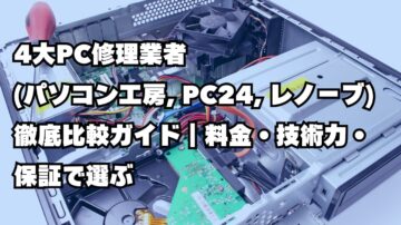 「パソコンが壊れたけど、修理業者が多すぎて選べない…」 「『PCバル(旧パソコン修理24)』『パソコン工房』『レノーブ』って、結局どこが一番いいの?」 パソコン修理を検討する際、これらの主要な修理業者の名前を目にすることは多いでしょう。しかし、各社が「最安」「最速」を謳う中で、自分にとって本当に最適な業者がどこなのかを見極めるのは困難です。 この記事では、主要なパソコン修理業者である「PCバル(旧…