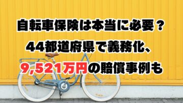 自転車保険は本当に必要?44都道府県で義務化、9,521万円の賠償事例も 「自転車保険って、本当に入らないとダメなの?」と疑問に思っていませんか?2024年10月時点で、全国47都道府県のうち44都道府県が自転車保険の加入を義務または努力義務としています。さらに、自転車事故で9,521万円という巨額の賠償責任が発生した事例もあり、自転車保険は現代社会において「あった方が良い」ではなく「必須の備え」…